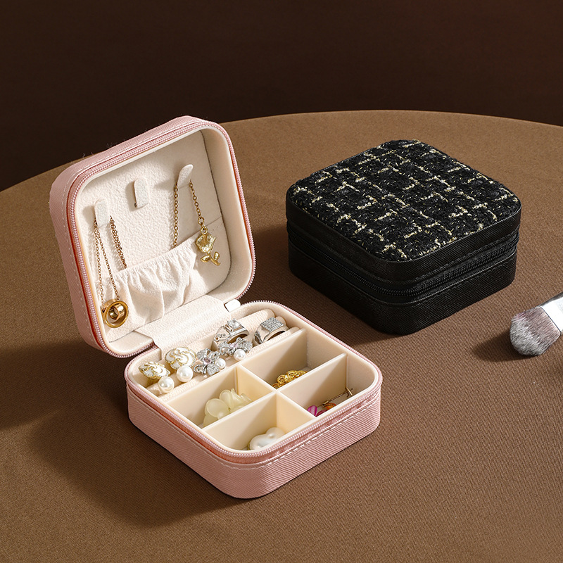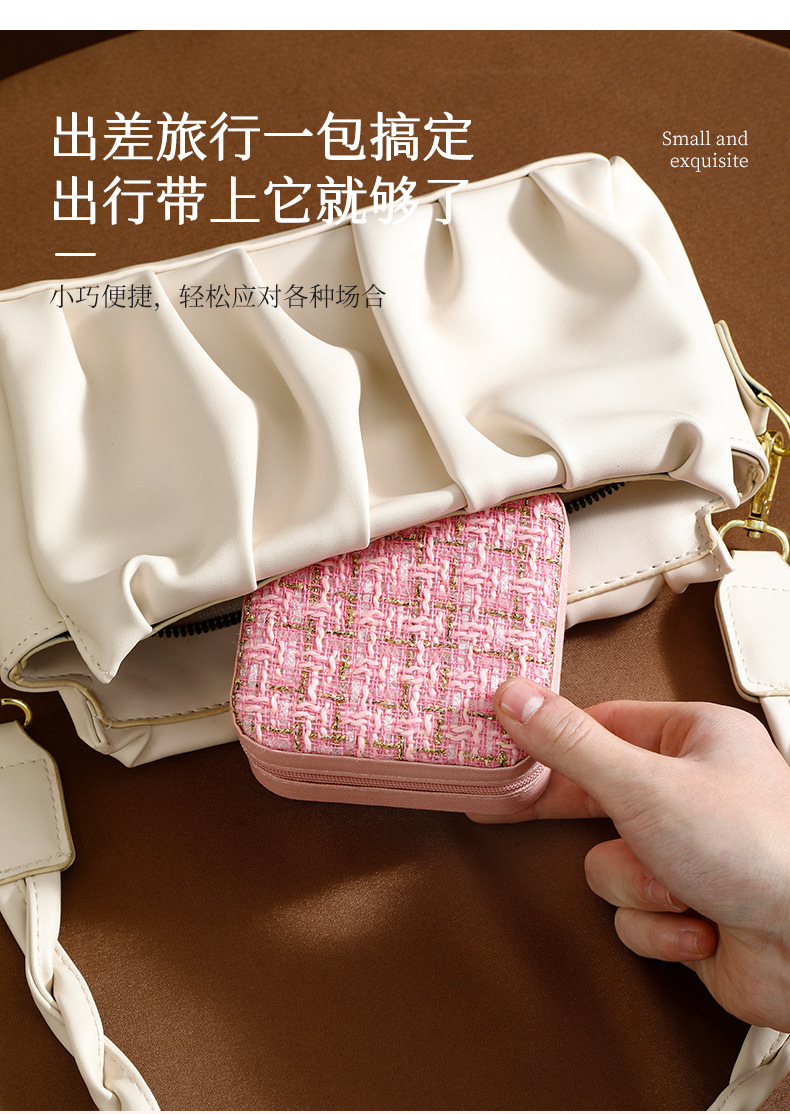 高級感あふれるツイード調の生地を蓋に使用した、布製のジュエリーボックスです。