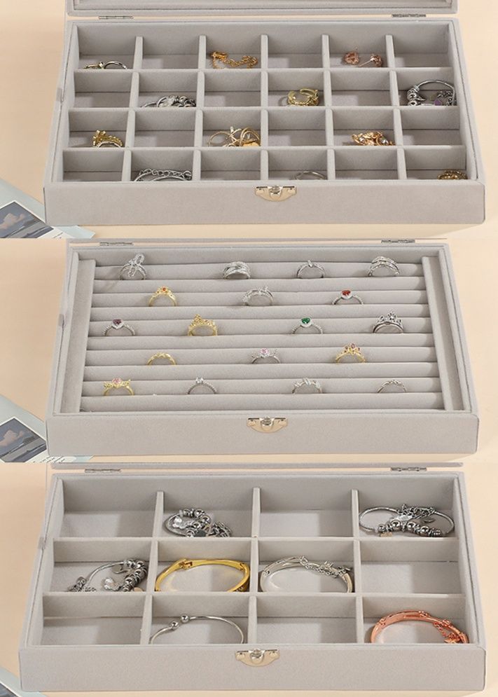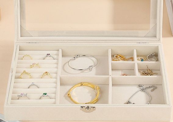 内側は柔らかな布製の仕切りで大切なジュエリーを優しく保護し、傷つけません。