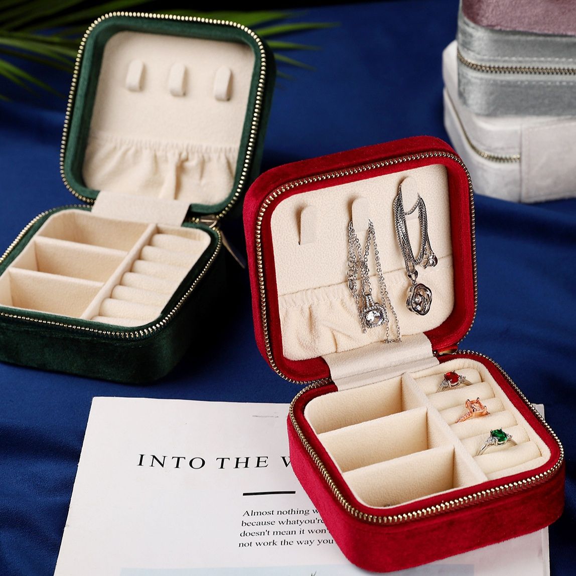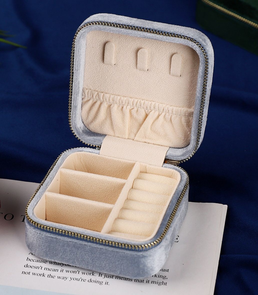 高級感のあるベルベット調の布製ジュエリーボックスです。