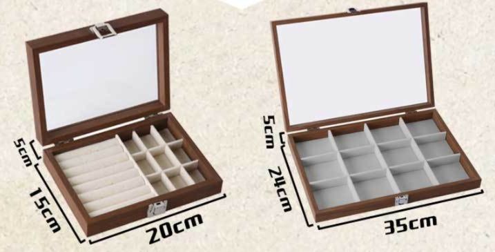 指輪やピアスを並べられる仕切り付きトレイとフリースペースの組み合わせ(小)、