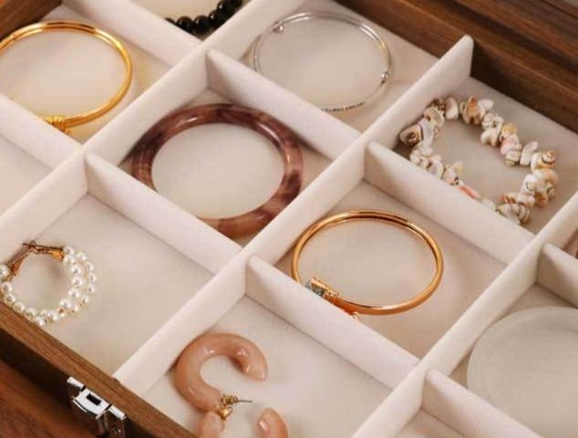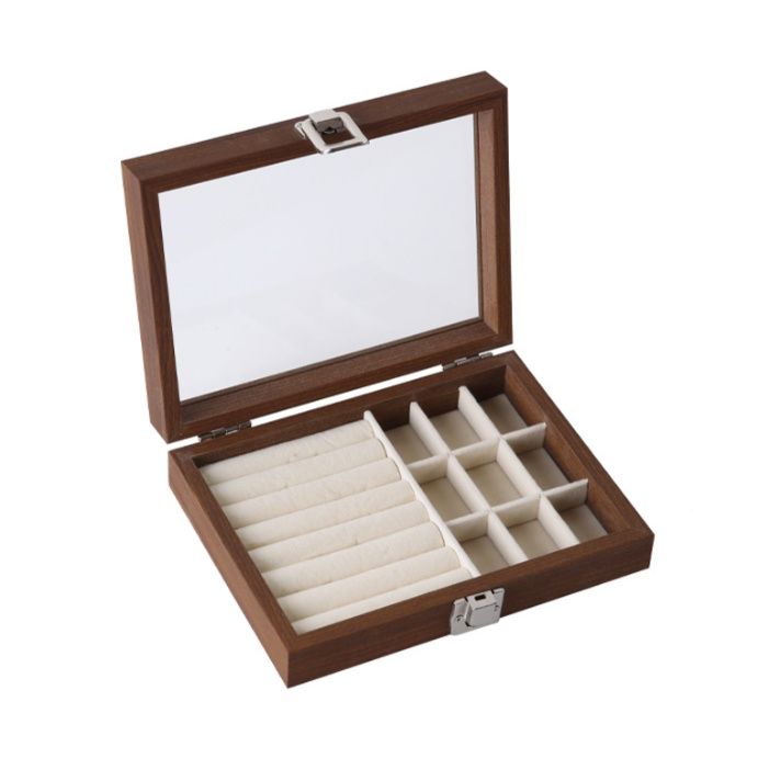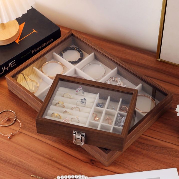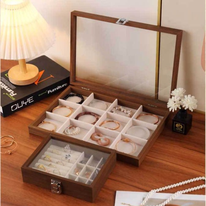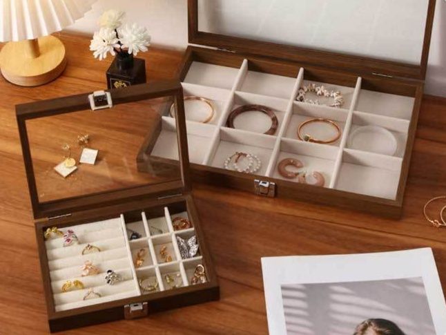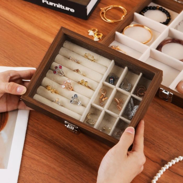 大切なアクセサリーを美しく整理できる木製のジュエリーボックスです。