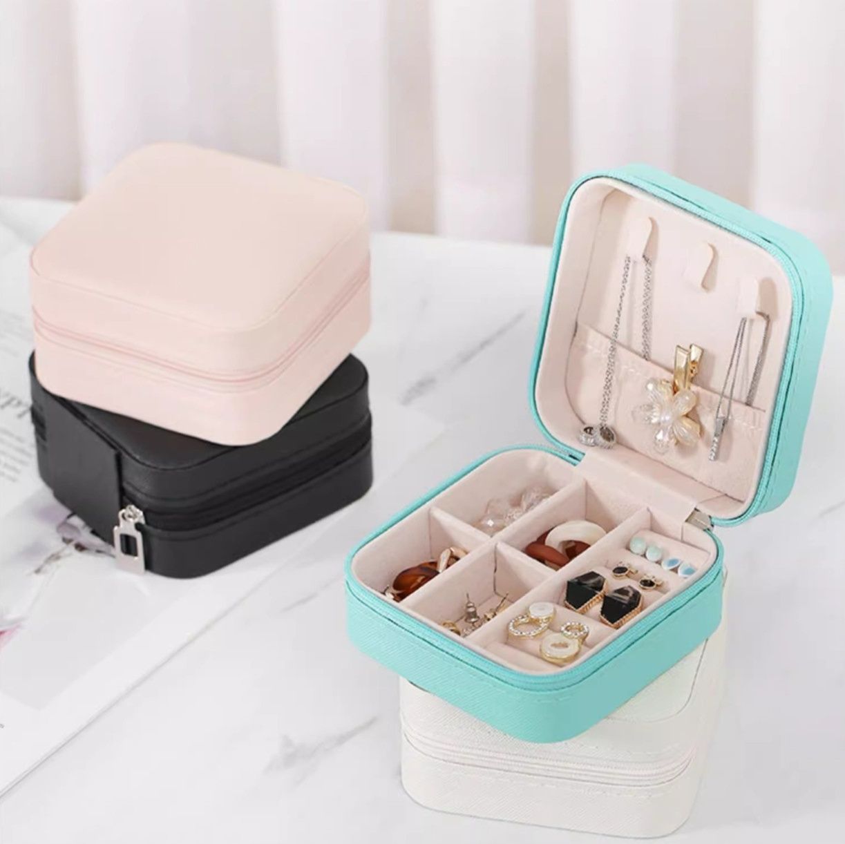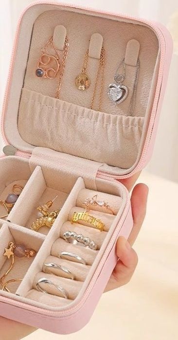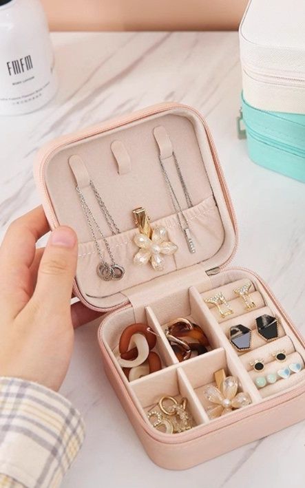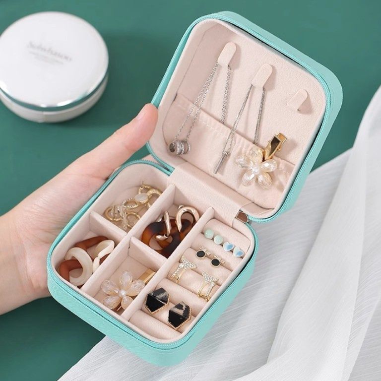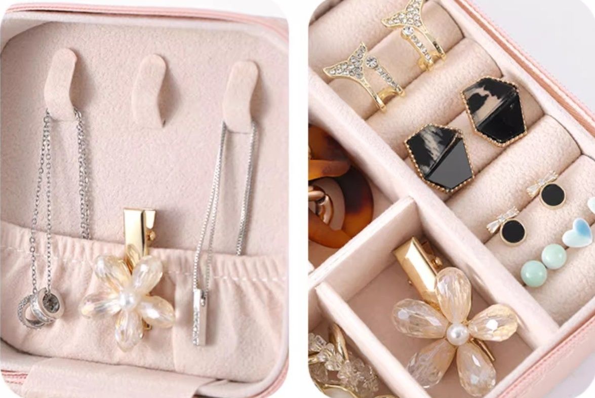 内部は複数の仕切りで構成され、指輪やイヤリング、ネックレスなどを種類別に収納可能です。