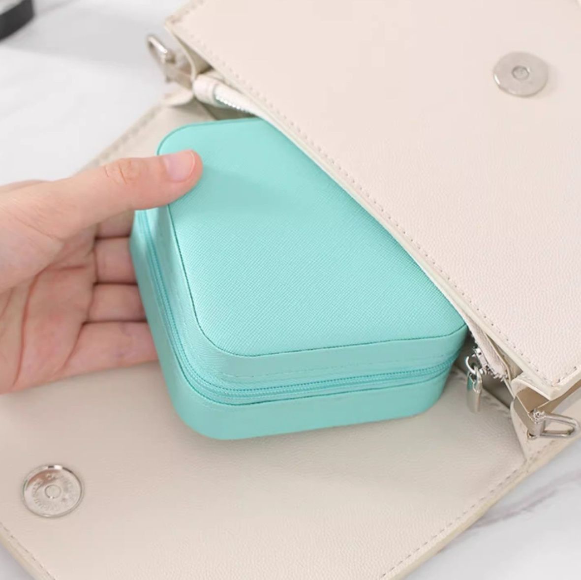 ファスナー開閉式で中身をしっかり保護し、大切なジュエリーを傷や埃から守ります。