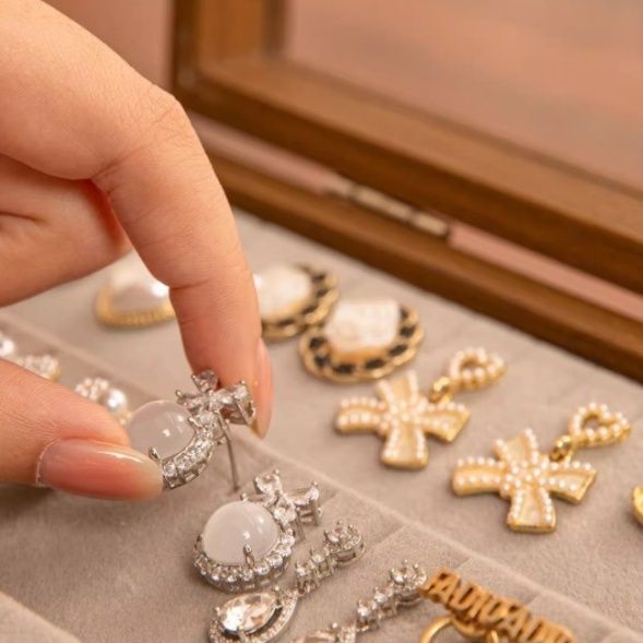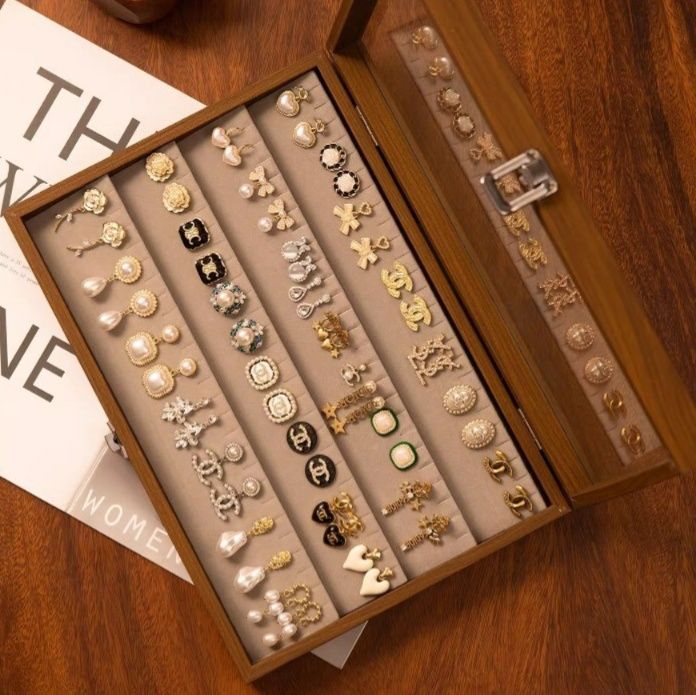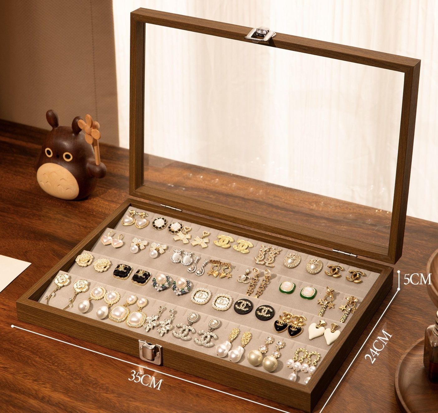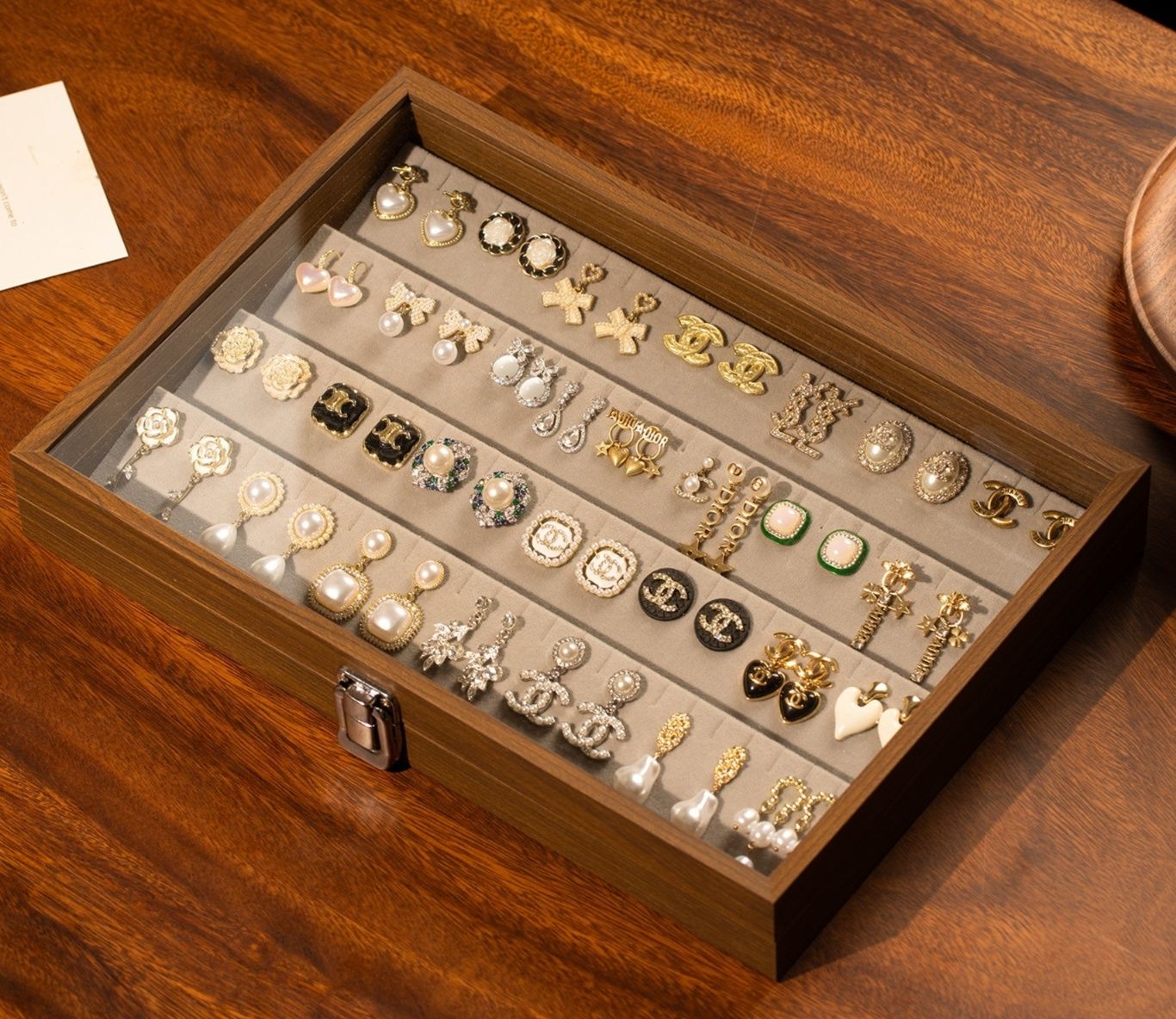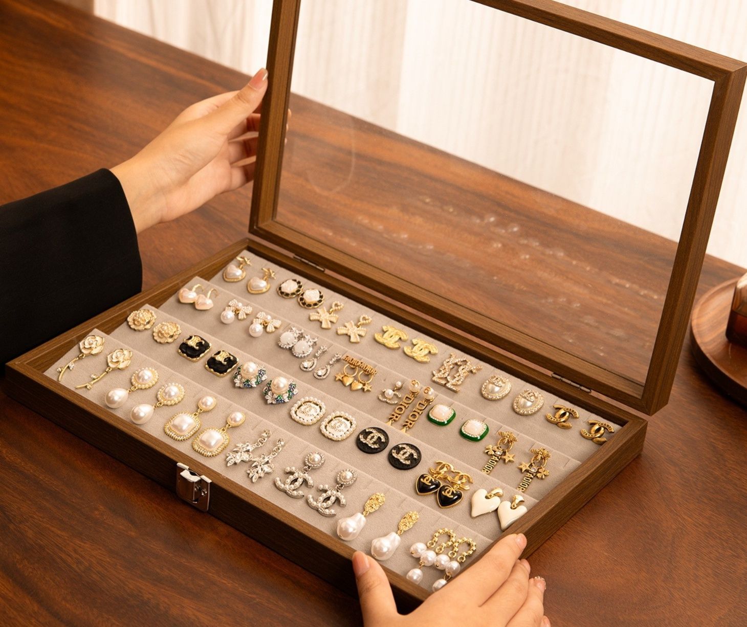 透明な蓋が付いているので中身が一目で確認でき、お気に入りのイヤリングやピアスをすぐに見つけられます。